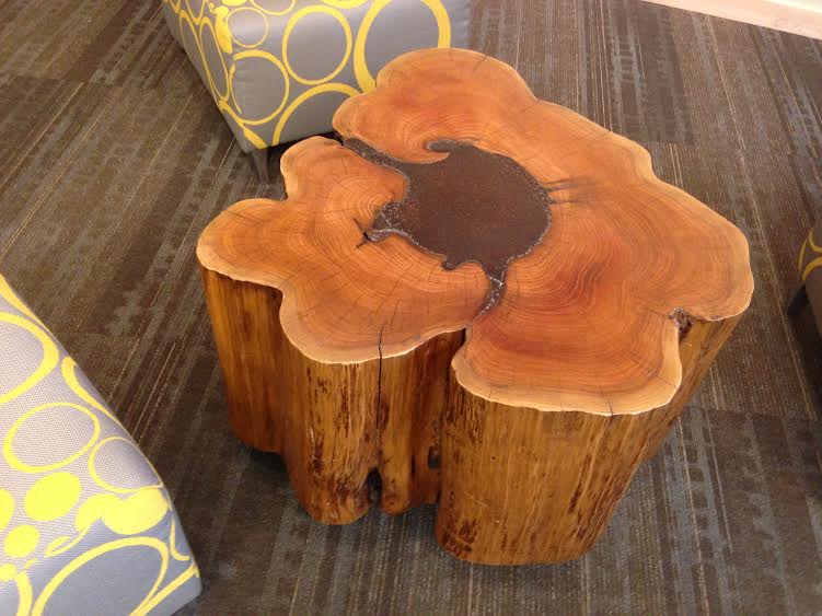 Hollow Cedar Log Table with Pitted Steel Infill